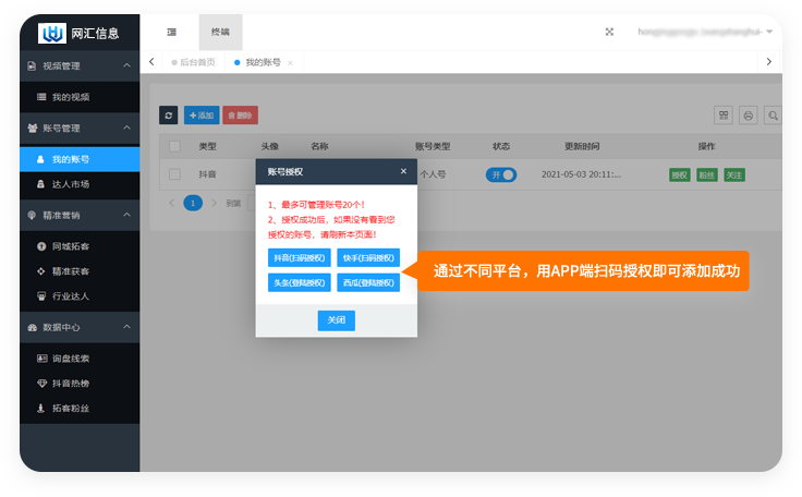 视频分发到大V号,通过大V号粉丝量曝光获客